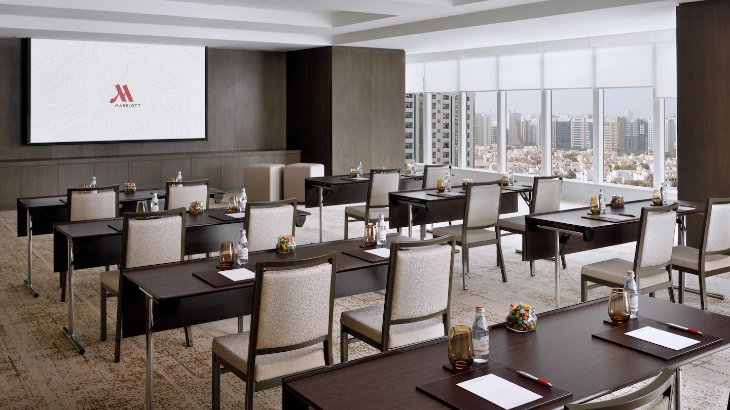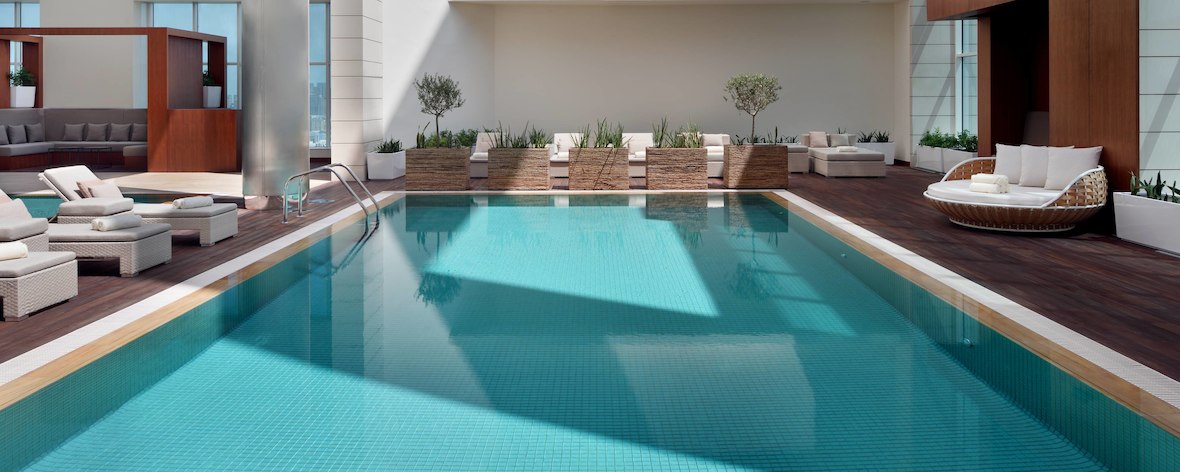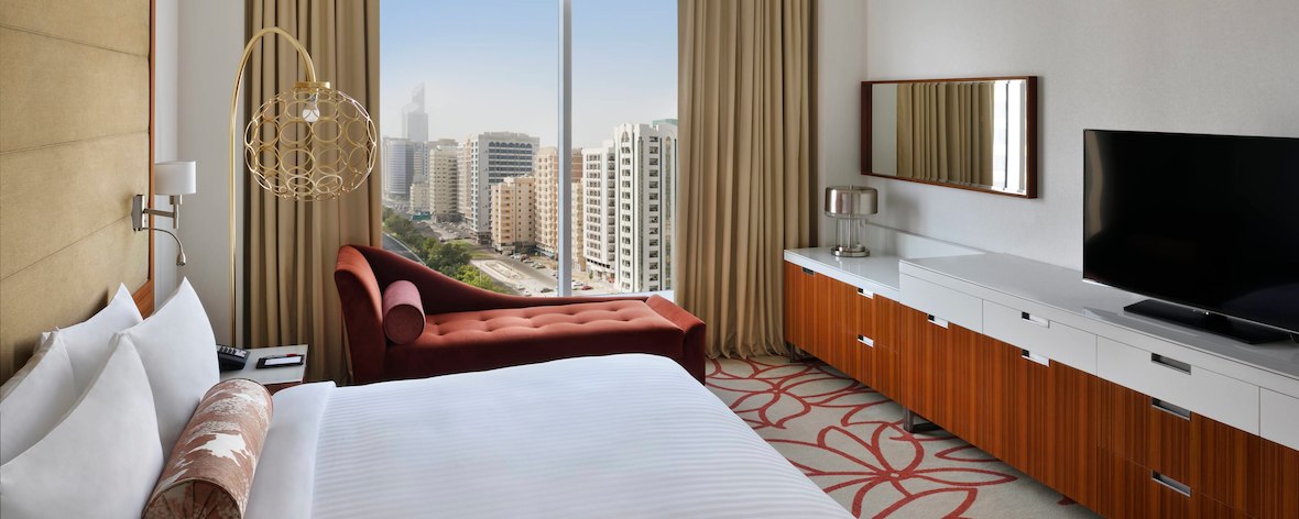Discover city center convenience and 5-star service at Marriott Hotel Downtown, Abu Dhabi. Our luxury hotel features modern, 500-square-foot accommodations in the heart of the vibrant downtown district. Offering around-the-clock dining, our hotel showcases a JW Steakhouse, a full-service restaurant, a coffee house, a sports bar/restaurant and a rooftop bar overlooking our outdoor pool. Challenge yourself to a workout in our fitness center and rejuvenate with a massage in our luxury spa. Enjoy free Wi-Fi in our public areas. Our business hotel boasts 22 venues, including a 6,000-square-foot Grand Ballroom and a Junior Ballroom. Ideal for meetings, conventions or social events, our hotel offers a 24-hour business center, cutting-edge audiovisual and tech services, on-site catering and planning teams. Explore the city easily from our well-placed hotel. We're less than 30 minutes from the Abu Dhabi International Airport and a short drive from Yas Island and the Abu Dhabi National Exhibition Centre.