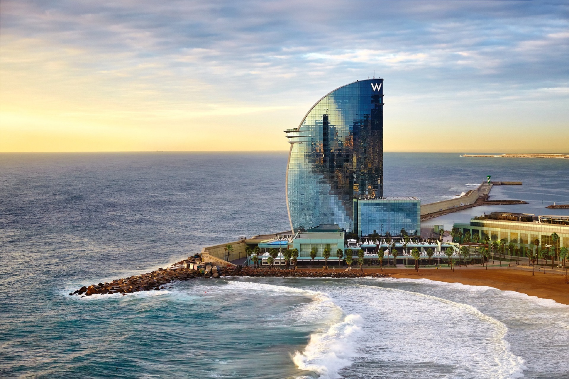 Step inside. See for yourself. Designed by world-renowned architect Ricardo Bofill, W Barcelona sets the scene for a spectacular stay. W Barcelona offers a combination of luxury and comfort in each of its 473 fabulous guestrooms and suites. This 5-star hotel is located on the beachfront along the famous Barceloneta Boardwalk. Each guestroom and suite provides panoramic views over the Mediterranean Sea and the city of Barcelona. Get glamorous on our 26th-floor hotspot, at the ECLIPSE rooftop bar or make your way down to our signature Living Room to find WAVE & the W LOUNGE for a cocktail (or two). Take a dip at our WET pool surrounded by sun terraces and cabanas and enjoy the only beachfront access at any hotel in the city.